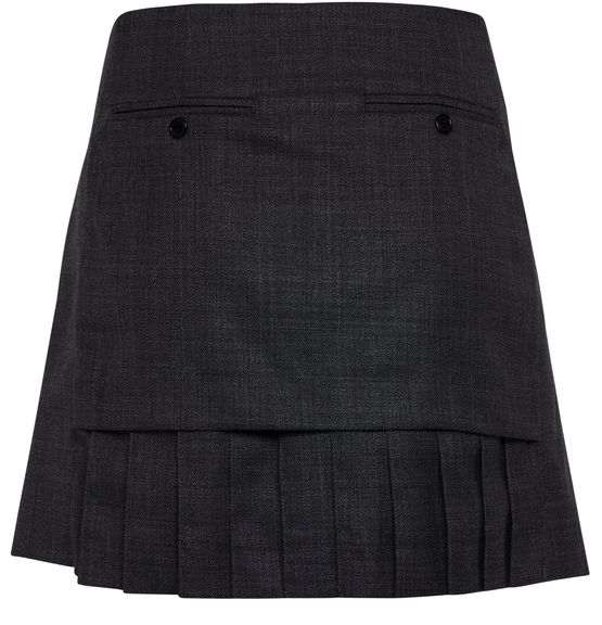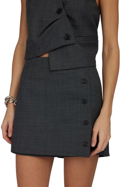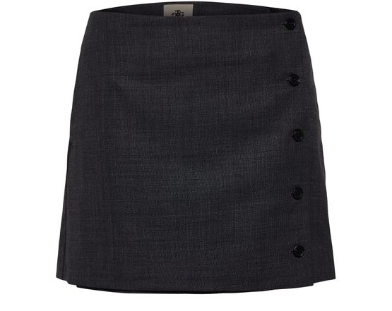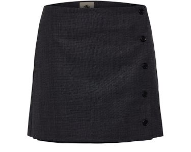 • Description : Short skirt, buttoned fastening, piped pockets, pleated details, slim fitting.