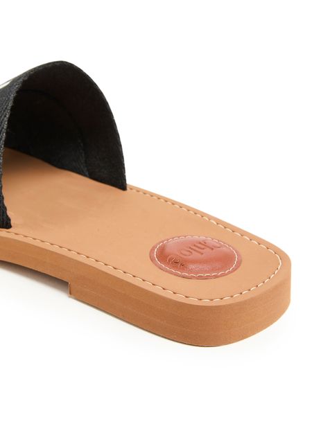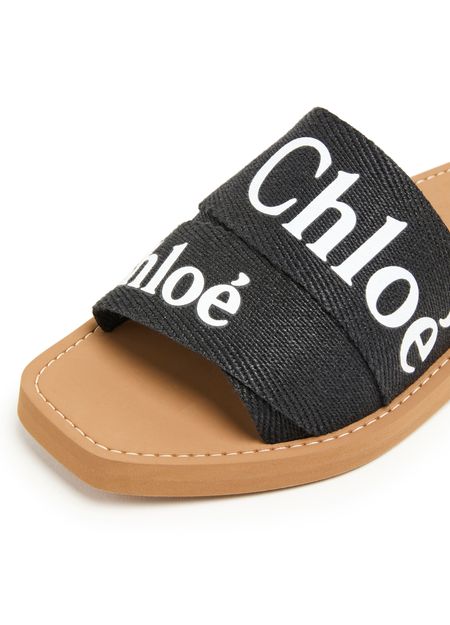 The Woody flat mules from Chloé feature a round open toe and Chloé lettering on the strap for a subtle touch of branding. The logo-printed insole provides a comfortable fit, while the thick outer sole adds durability. With a flat heel, these mules are both stylish and practical for everyday wear.