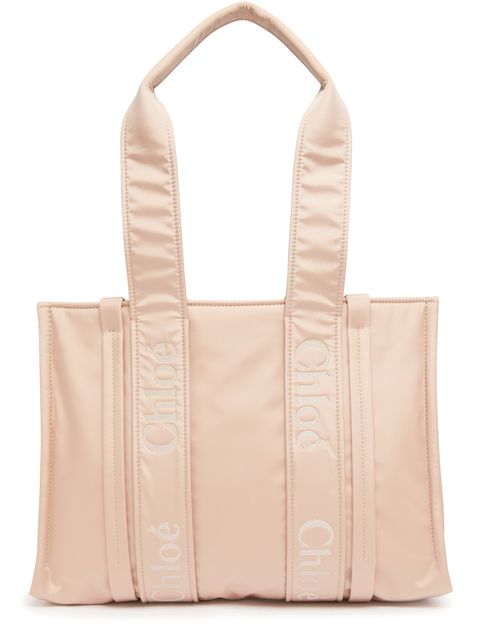 Chloé's Woody medium tote bag features embroidered details and a front logo for a chic touch. The single compartment and interior patch pockets offer ample storage. It can be hand carried or worn on the shoulder with the wide strap and double handles. A timeless piece with an embroidered logo.