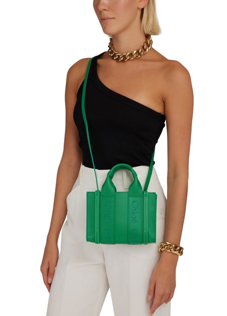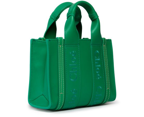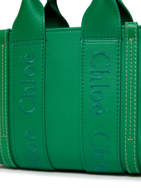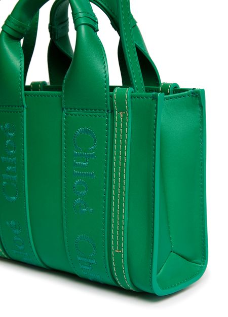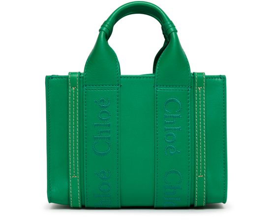 Chloe's Woody mini tote bag is a versatile shopper's dream. This hand-carried bag can be worn on the shoulder or crossbody, thanks to the adjustable strap. With two handles for easy carrying, this stylish accessory features an embroidered logo for a touch of sophistication. Perfect for any fashion-forward individual.