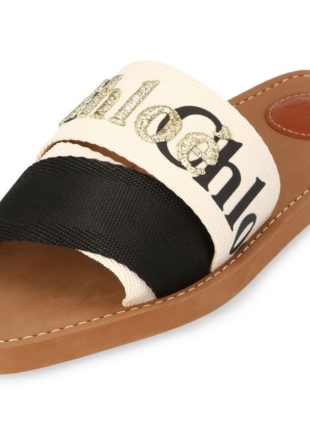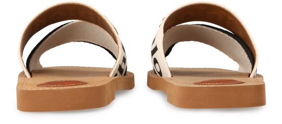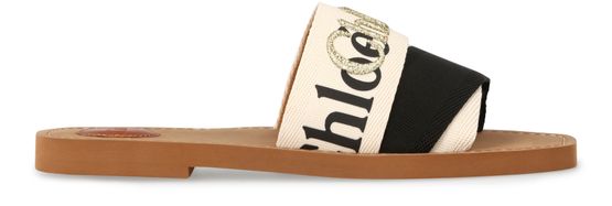 The Woody sandals are made from calfskin leather and feature a flat heel. Catching the eye with their two-tone toe, they shine the spotlight on the Chloé fashion house with their logo decoration.