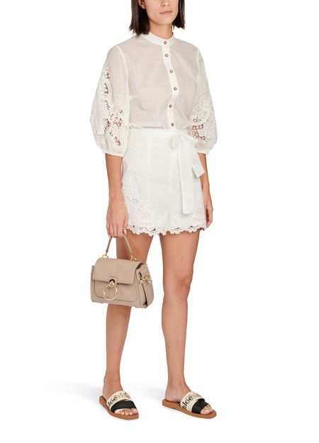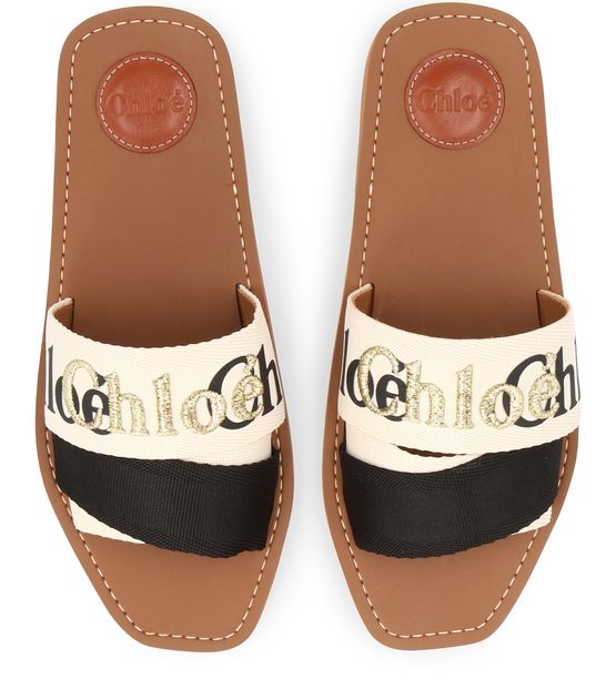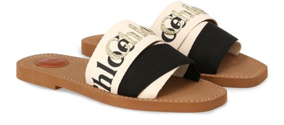 Description : Open square toe, sparkling details, chloé lettering, calfskin leather, logo insole, flat heel.