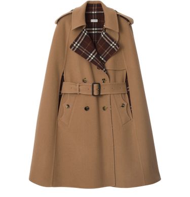 Reveal Burberry's Wool Belmont Trench Cape where elements from the brand's iconic trench are reconstructed and made from double-faced wool twill. The silhouette features epaulettes, a gun flap and B buckle belt, whilst an archival coat inspires the curlicue shape of the pockets. Cut to a regular fit with a contrasting Burberry Check inner and lapels.
