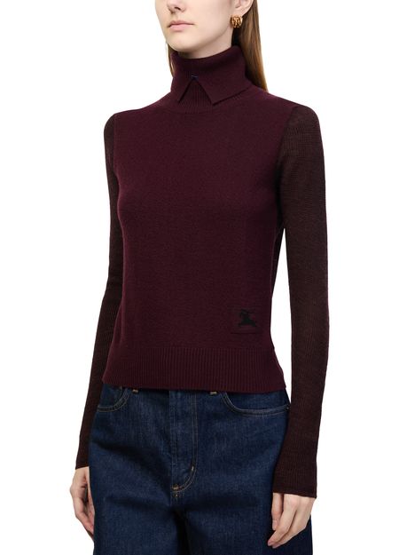 Reveal Burberry's ribbed funnel neck sweater, featuring an embroidered logo and long sleeves for a refined silhouette. The textured knit and sleek neckline offer a modern edge, making this knitwear a versatile choice for layering or standalone style in any contemporary wardrobe.