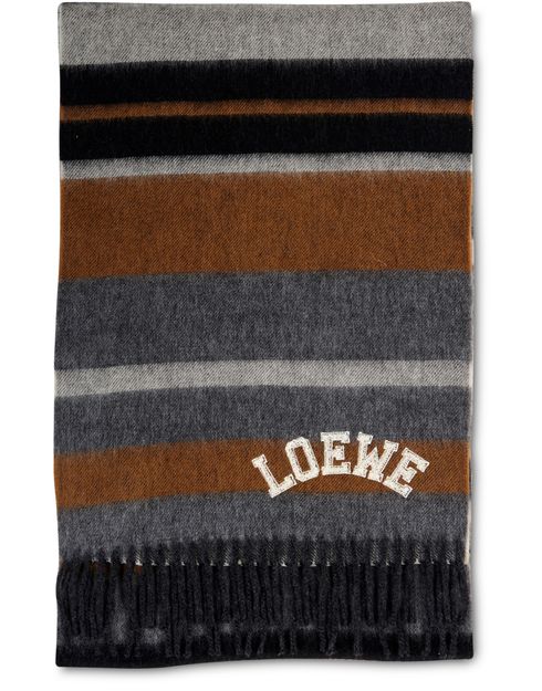 In pure wool this piece from Loewe will keep you warm when it's cold. This wool scarf will add softness to any outfit. This designer piece will up your style. Wear this scarf with an oversize round neck jumper, straight cut jeans or trousers and calf skin boots.