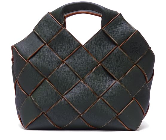 The grained calf skin leather Woven tote bag incarnates Loewe's skill. It is embellished with contrasting stitching and the brand's logo.