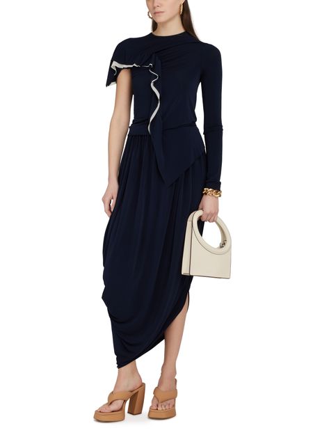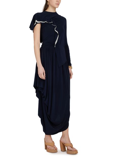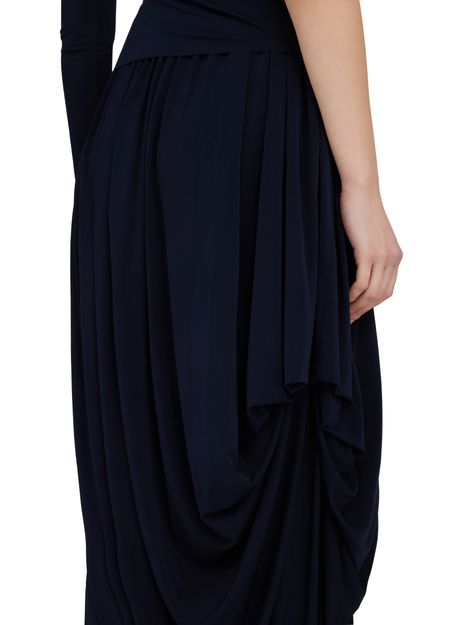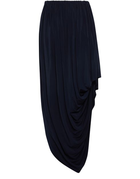 • Description : Maxi skirt, fluid material, asymmetric cut, gathered details, draped detail.