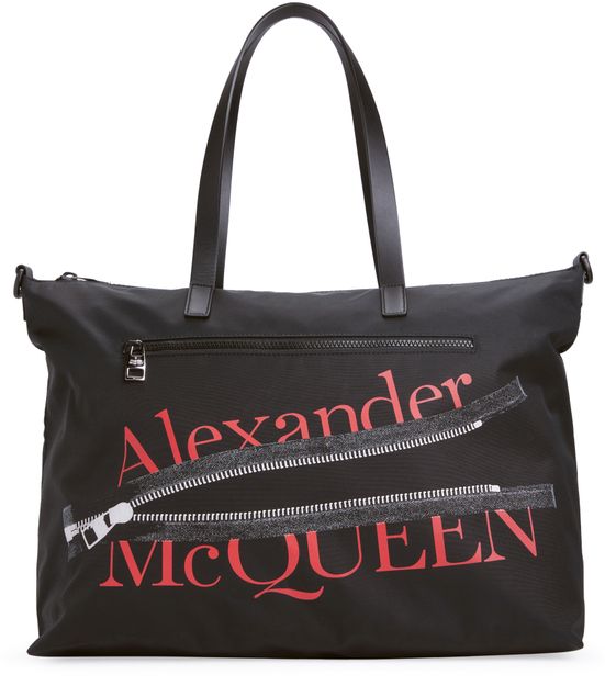 Two handles and an adjustable, detachable shoulder strap make the zippered shopper an essential accessory. With Alexander McQueen lettering and a zipper motif, its punk chic style will make a splash.