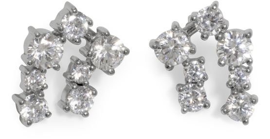 Reveal Completed Works' zirconia and rhodium plated earrings, a stunning blend of asymmetrical design and semi-hoops. Set with diamonds, these earrings feature a sleek silver finish and a secure post-back closure, making them a perfect addition to any modern jewelry collection.