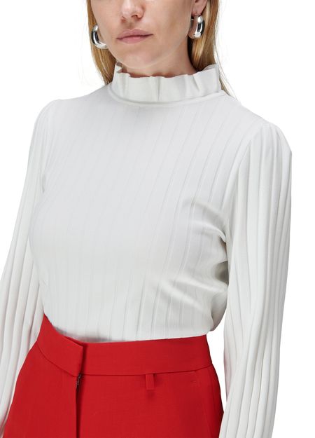 • Description : Long-sleeved sweater, tailored fit, mockneck, ruffle details, cuffs.