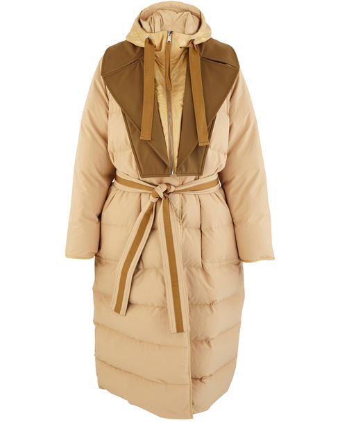 Moncler Genius ose un design oversize et des découpes audacieuses pour sa doudoune Glomma. Ce manteau long d'hiver reste féminin grâce à un effet bi-matière élégant.
