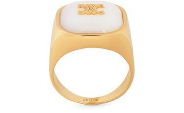 Découvrez la bague chevalière Triomphe de Celine, une pièce exquise avec une signature Celine gravée qui incarne l'élégance intemporelle dans chaque détail.