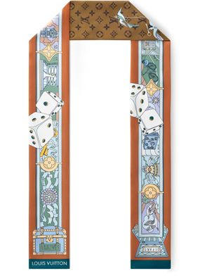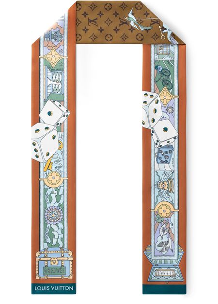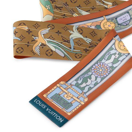 Doté d'un design ludique et élaboré, ce bandeau LV Journey en soie allie un savoir-faire d'exception à une signature discrète de la Maison. Son imprimé original s'orne de motifs Monogram et d'éléments qui évoquent le voyage et les jeux, tels que des malles, des sacs et des dés. À la fois moderne et intemporel, ce modèle s'impose comme un accessoire emblématique en devenir.