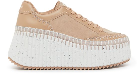Adoptez les sneakers compensées Nama de Chloé, conçues avec une attention minutieuse aux détails. Leur couture visible souligne une élégance discrète, tandis que le logo sur la languette ajoute une touche de distinction. Avec un design à bout rond fermé, elles allient style et confort.