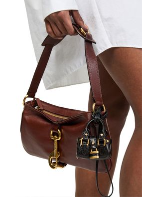 Découvrez les bijoux de sac Chloé Symbols de Chloe, ornés de finitions dorées et d’une bi-matière élégante. Les détails de clous et le logo gravé apportent une touche distinctive, transformant cet accessoire en un ornement raffiné pour vos clés ou votre sac préféré.