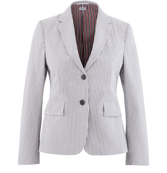 Thom Browne revisite un classique de la garde-robe urbaine avec ce blazer en coton. Sa coupe traditionnelle est rehaussée par un motif rayé all over.