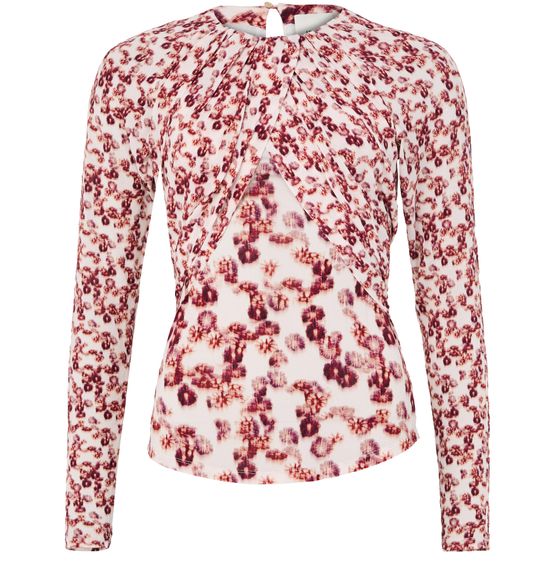 Découvrez le top à manches longues Gaetane d'Isabel Marant, une pièce d'élégance. Cette coupe ajustée présente une encolure ras du cou et des manches longues, ornée d'un imprimé floral captivant. La fermeture bouton au dos et la taille froncée ajoutent une touche de sophistication, idéale pour toute occasion.