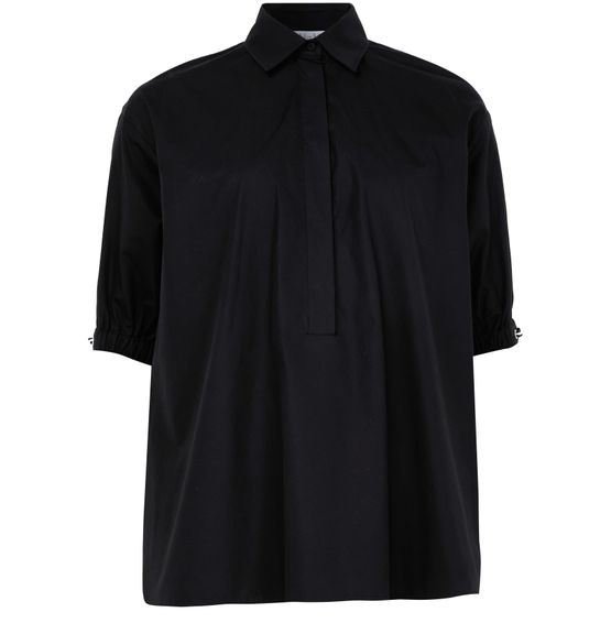 La blouse en popeline de coton Teano de Max Mara allie élégance et confort. Avec ses boutons sur le devant et son col chemise classique, elle se distingue par ses manches trois-quarts bouffantes. Les surpiqûres visibles et le logo appliqué ajoutent une touche raffinée, tandis que les pinces à l'avant soulignent la silhouette.
