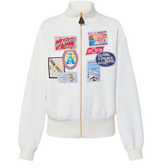 Ce blouson doté d'une fermeture à glissière se distingue par son allure sportive. Réalisé en maille épaisse, ce modèle est souligné d'ourlets côtelés ton sur ton. La poitrine s'orne des écussons Élysée Palace colorés emblématiques de la capsule Flight Mode qui offrent une relecture ludique des étiquettes de voyage, accompagnés de signatures Louis Vuitton.