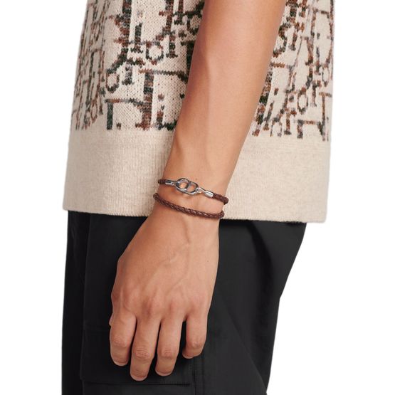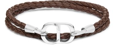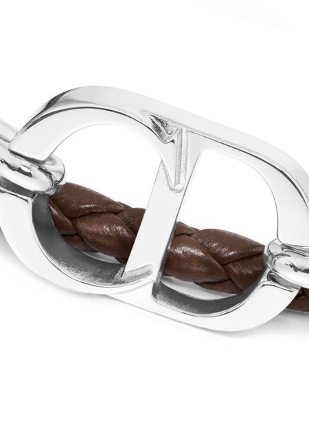 Découvrez le bracelet cuir tressé CD Icon de Dior. Ce bijou raffiné arbore la signature emblématique CD Icon, fabriquée en laiton finition argentée. Son fermoir crochet élégant garantit un ajustement sécurisé, ajoutant une touche sophistiquée à toute tenue.