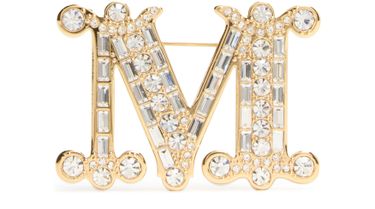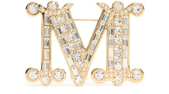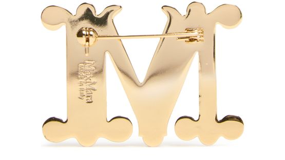 Découvrez la broche Bath de Max Mara, un bijou remarquable avec son logo gravé et sa fermeture à clip. Confectionnée avec une finition dorée, cette broche en forme de lettre apporte une touche de sophistication à tout ensemble.