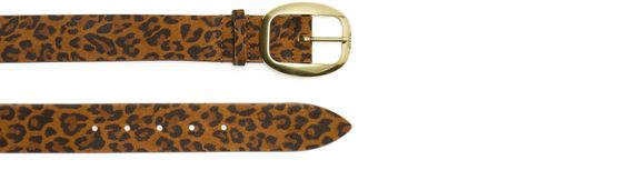 • Description : cuir de veau velours, imprimé motif léopard, fermoir réglable, boucle emblématique de la marque, bouclerie en métal couleur or, logo en lettres dorées.