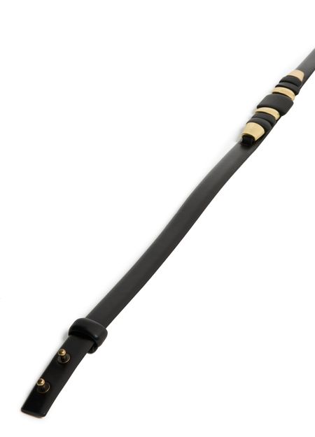 • Description : ceinture en cuir, fermeture à pression, bouclerie en métal couleur or.