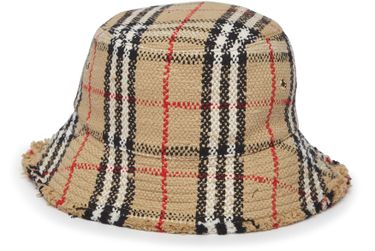 Chapeau Burberry Check avec couronne ronde et bord large, orné d'un motif imprimé. Ce chapeau arbore le motif Vintage check emblématique de la marque, lui conférant un style rétro et intemporel. Idéal pour agrémenter n'importe quelle tenue avec une touche de sophistication britannique.