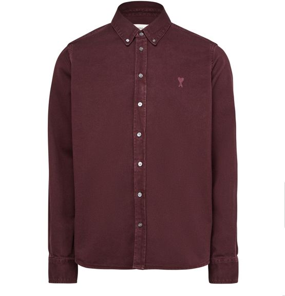 La chemise Ami de Cœur se distingue par ses boutons sur le devant et son logo brodé sur la poitrine, visible avec élégance. Son col américain et ses manches longues aux poignets boutonnés apportent une touche raffinée. Avec des manches resserrées, cette chemise habillée incarne le chic contemporain.