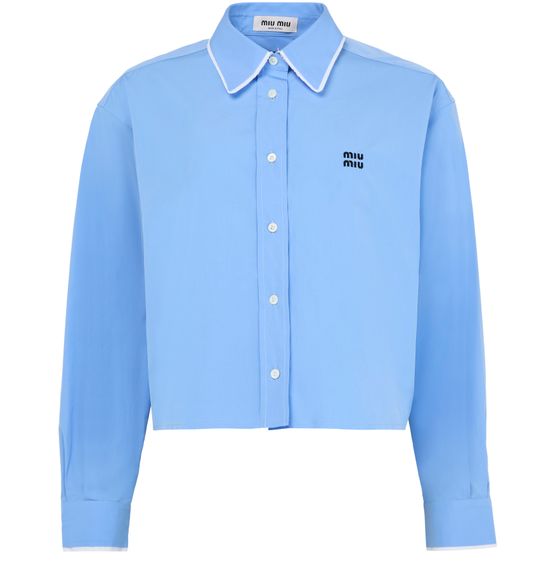 La chemise courte en coton Miu Miu se distingue par ses boutons sur le devant et son logo brodé sur la poitrine. Avec des manches longues et des poignets boutonnés, elle offre une silhouette classique. La surpiqûre visible et les manches resserrées ajoutent une touche contemporaine à ce vêtement intemporel.