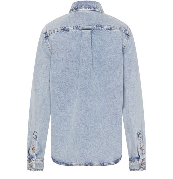 La chemise en denim Petite de Toteme incarne le classique avec ses manches longues et ses boutons sur le devant. La poche poitrine et la surpiqûre visible ajoutent du caractère, tandis que les manches resserrées et les poignets boutonnés apportent une touche raffinée. L'étiquette avec logo à l’arrière souligne son élégance.