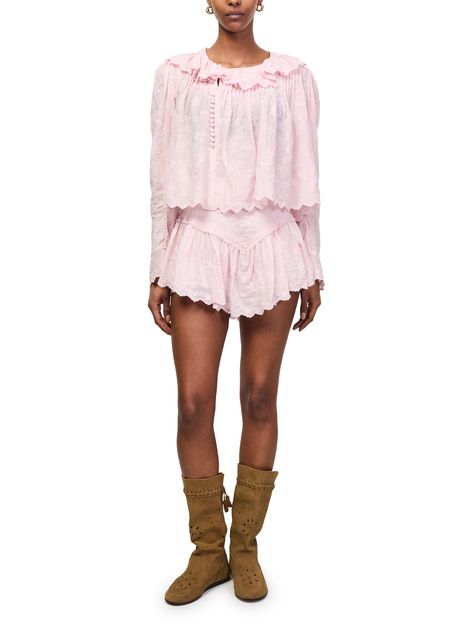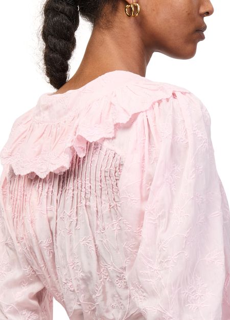 Découvrez le chemisier Zelly d'Isabel Marant, une pièce d'élégance avec son col rond et ses manches longues à volants. La broderie florale ajoute une touche de sophistication, tandis que la fermeture à bouton assure un ajustement parfait. Ce haut se porte facilement du jour à la nuit, un incontournable polyvalent.