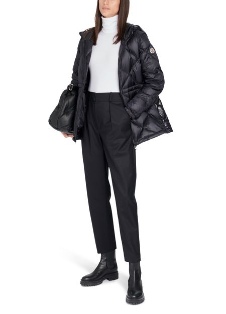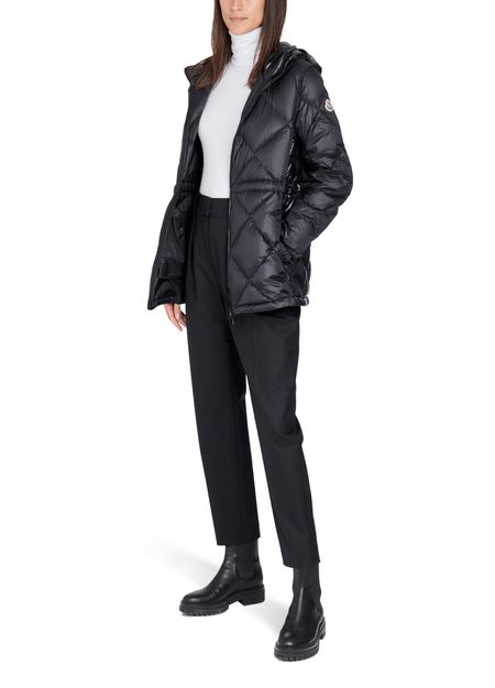 La doudoune Sargas est signée Moncler. Cette pièce à l'effet matelassé offre une coupe longue et ceinturée à la taille. Une doudoune monochrome particulièrement féminine et élégante.