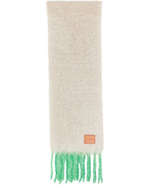 L'écharpe en mohair et laine de Loewe se distingue par ses détails franges délicats et son logo appliqué à l'avant. Les bords effrangés ajoutent une note d'originalité, créant un accessoire à la fois chic et audacieux. Un incontournable pour ceux qui cherchent à allier confort et style.