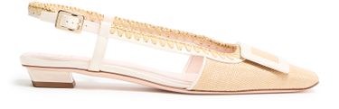 : tissu, empiècements : cuir verni, raphia, semelle : cuir