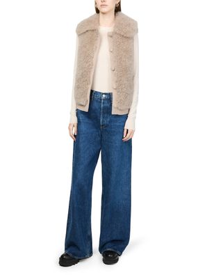 Découvrez le gilet en fourrure d'agneau de Yves Salomon, une pièce en cuir velours avec détail fourrure. Sa coupe regular et sa fermeture à bouton ajoutent une touche pratique, tandis que sa matière chaude et ses poches latérales en font un choix polyvalent pour toutes les occasions.