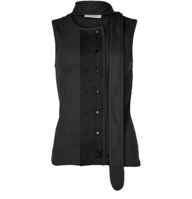 Découvrez le haut ajusté asymétrique Lemaire, confectionné en bi-matière à bords-côtes pour une texture unique. Son col rond et sa fermeture à bouton dessinent une silhouette élégante, rehaussée par une surpiqûre visible. Idéal avec un pantalon ajusté ou un jean pour un style contemporain.