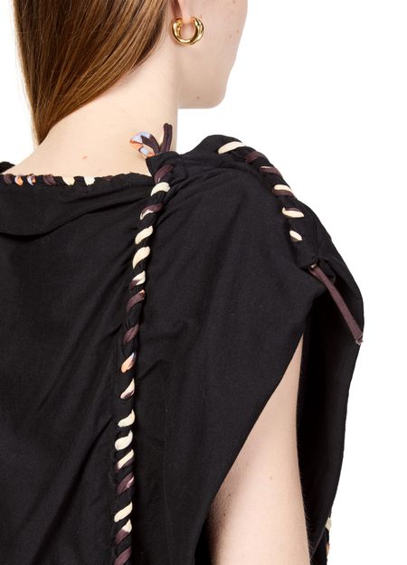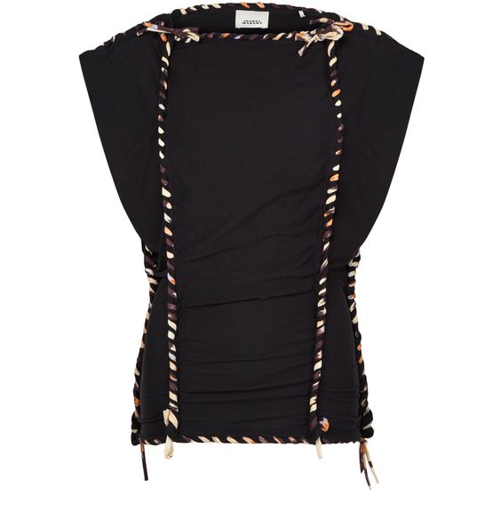 Le haut Zohra d'Isabel Marant séduit par son encolure bateau et ses détails de surpiqûre visible. Sans manches, il incarne l'élégance décontractée des chemisiers et blouses. Le logo appliqué souligne son style unique, faisant de ce vêtement un incontournable pour celles qui recherchent un look à la fois classique et contemporain.