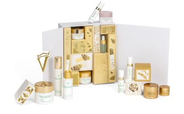 Le calendrier contient : Prime Renewing Pack 30 ml, Prime 24 heures 15 ml, Lumimasque 15 ml, Crème V-Ferme 15 ml, Booster hydratant 4 ml, Perfection restauratrice 5 ml, Sérum régénérant Hydra3 5 ml, Cure Majestueuse 4 ml, Votre Visage 15 ml, Vos Yeux 5 ml, Poire mignonne 10 ml|, Just Bloom 10 ml
