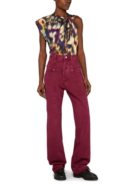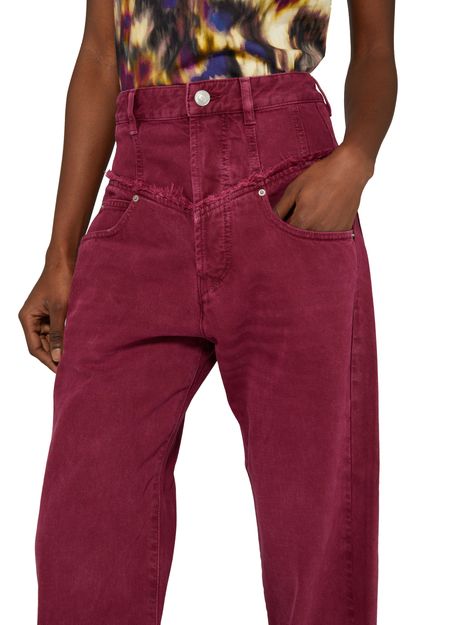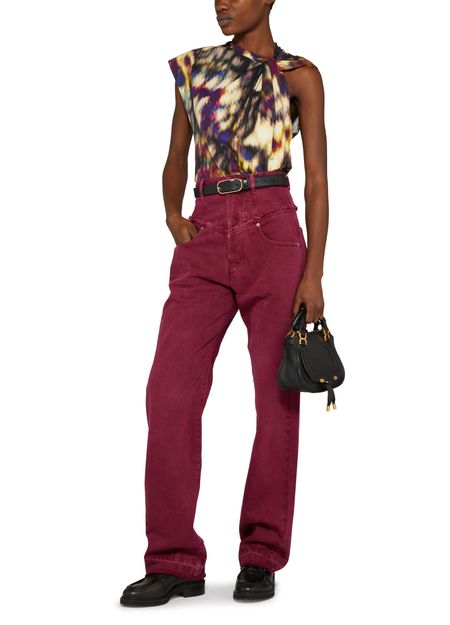 Le jean droit Noemie d'Isabel Marant présente une longueur cheville moderne avec un logo à l'arrière. Le style cinq poches classique est rehaussé d'un détail patch et d'un logo appliqué. La fermeture bouton et à glissière dissimulée apporte une touche de sophistication à ce jean intemporel.