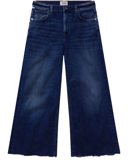 Découvrez le jean jambe large Lyra de Citizens of Humanity, en jean bleu délavé avec un porté taille haute. Sa coupe large et sa fermeture à glissière avec bouton ajoutent du style. Doté de passants pour ceinture et d'un style cinq poches, il allie élégance et praticité.