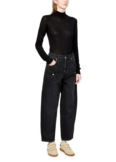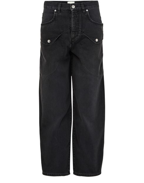 Le jean Varda d'Isabel Marant incarne l'élégance décontractée. Sa coupe ample et sa longueur cheville offrent confort et style. Doté d'une fermeture bouton et à glissière dissimulée, il arbore des surpiqûres visibles et un style cinq poches. Les passants pour ceinture et le logo appliqué complètent ce modèle taille basse.