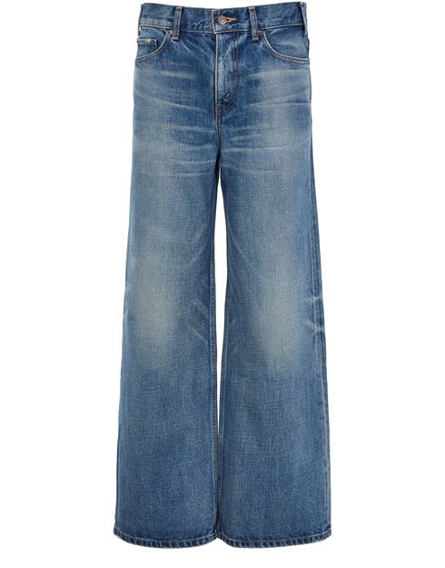 Découvrez le jean large Jolene de Celine avec une coupe classique, taille mi-haute et jambe évasée. Doté de cinq poches avec rivets sur le devant et un patch distinctif à l'arrière, accompagné d'une fermeture éclair et d'un bouton Triomphe. Parfait pour sublimer votre garde-robe.