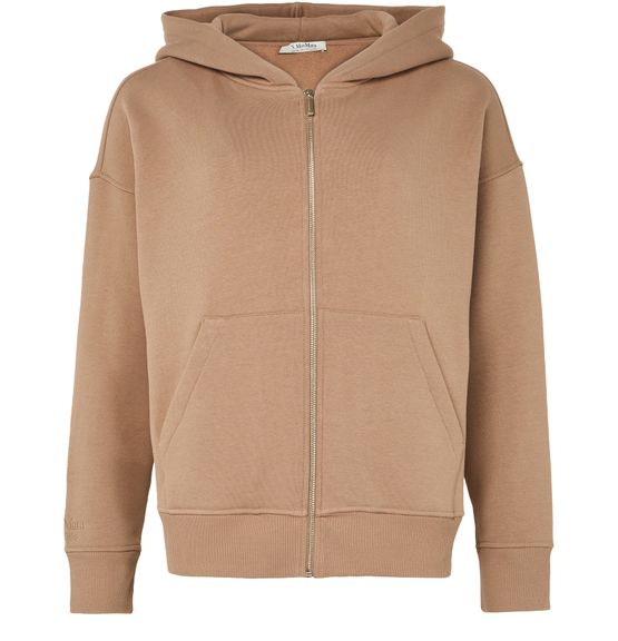 Découvrez le sweatshirt zippé Julia de S Max Mara. Sa coupe ample et sa capuche offrent une silhouette décontractée, tandis que les manches longues à emmanchure basse et la poche kangourou ajoutent une touche casual. Un choix parfait avec fermeture à glissière pour un style polyvalent.