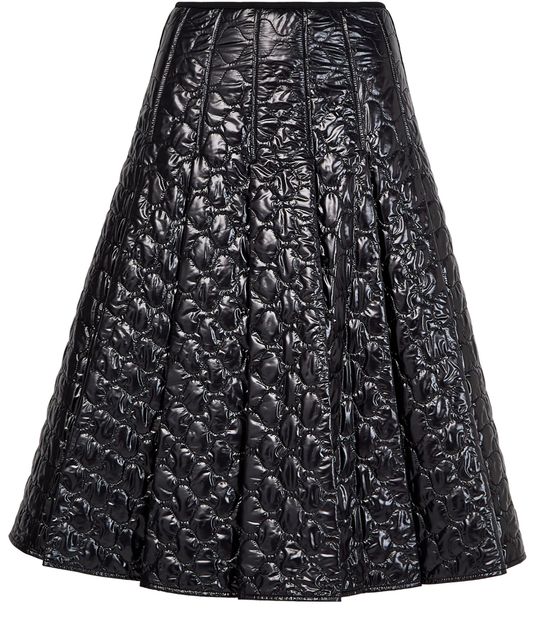 Découvrez la jupe longueur genou à motif à losanges de Moncler. Confectionnée en cuir vernis, elle présente des détails plissés et une fermeture à glissière au dos. Sa texture capitonnée et sa surpiqûre visible renforcent son allure moderne, parfaite pour des occasions de jour comme de nuit.