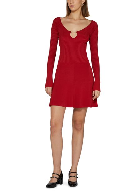 • Description : mini robe, manches longues, col rond, finitions dorées.