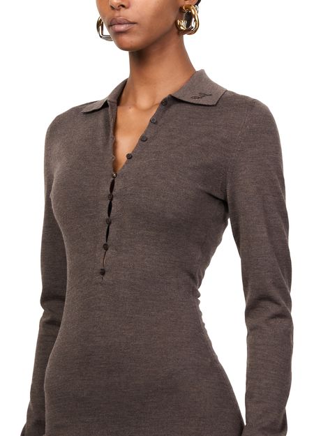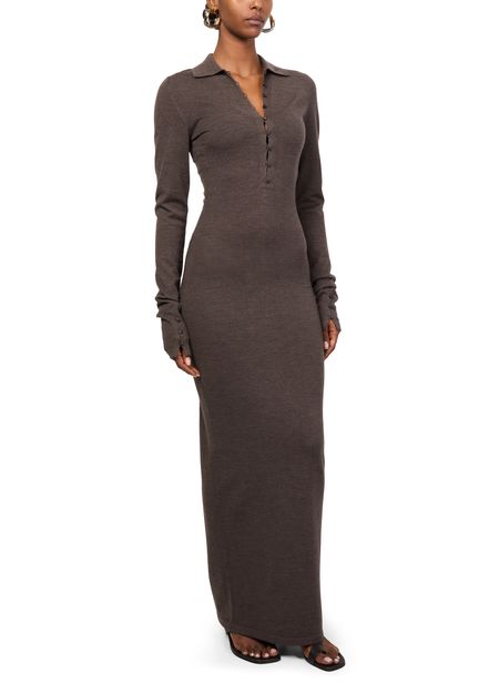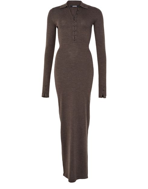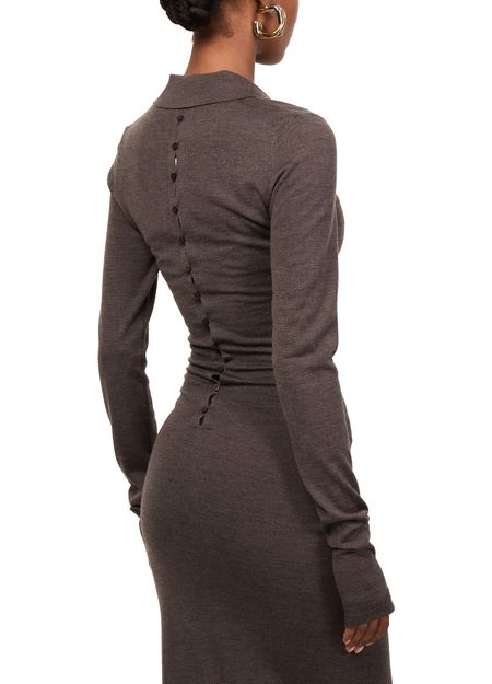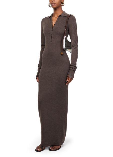 Découvrez la robe polo Merino de Jacquemus, une pièce d'élégance moderne. Cette robe longue à coupe ajustée en matière chinée et bords-côtes sublime la silhouette. Le col en V et les manches longues resserrées ajoutent une touche de raffinement, tandis que la fermeture à bouton assure un ajustement parfait. Parfaite pour toutes les occasions.