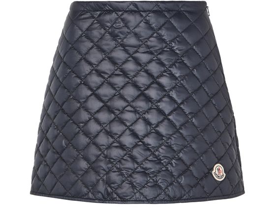 Découvrez la mini jupe matelassée de Moncler, ornée d'un motif à losanges et d'une longueur mini qui réinventent l'élégance. La surpiqûre visible et la texture capitonnée offrent une touche moderne, tandis que le logo sur le côté ajoute une touche signature. Idéale pour passer du jour à la nuit.