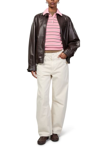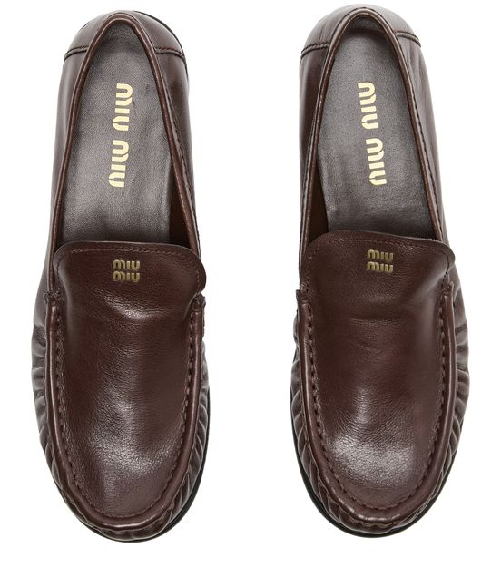 Découvrez les mocassins en cuir lisse de Miu Miu, dotés d’un bout arrondi et d’un talon plat pour une allure contemporaine. La piqûre visible et le logo estampé sur la languette soulignent le style, tandis que la semelle intérieure en cuir offre un confort optimal au quotidien.