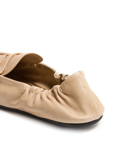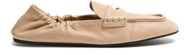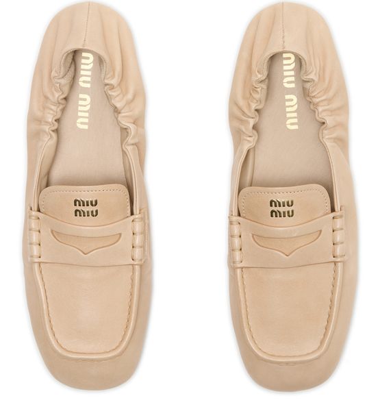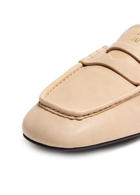 Découvrez les mocassins en cuir de Miu Miu, confectionnés en cuir lisse avec un bout carré fermé. Les côtés élastiqués offrent un confort optimal, tandis que la piqûre visible et le logo sur la languette soulignent l’élégance moderne de ce modèle à talon plat.